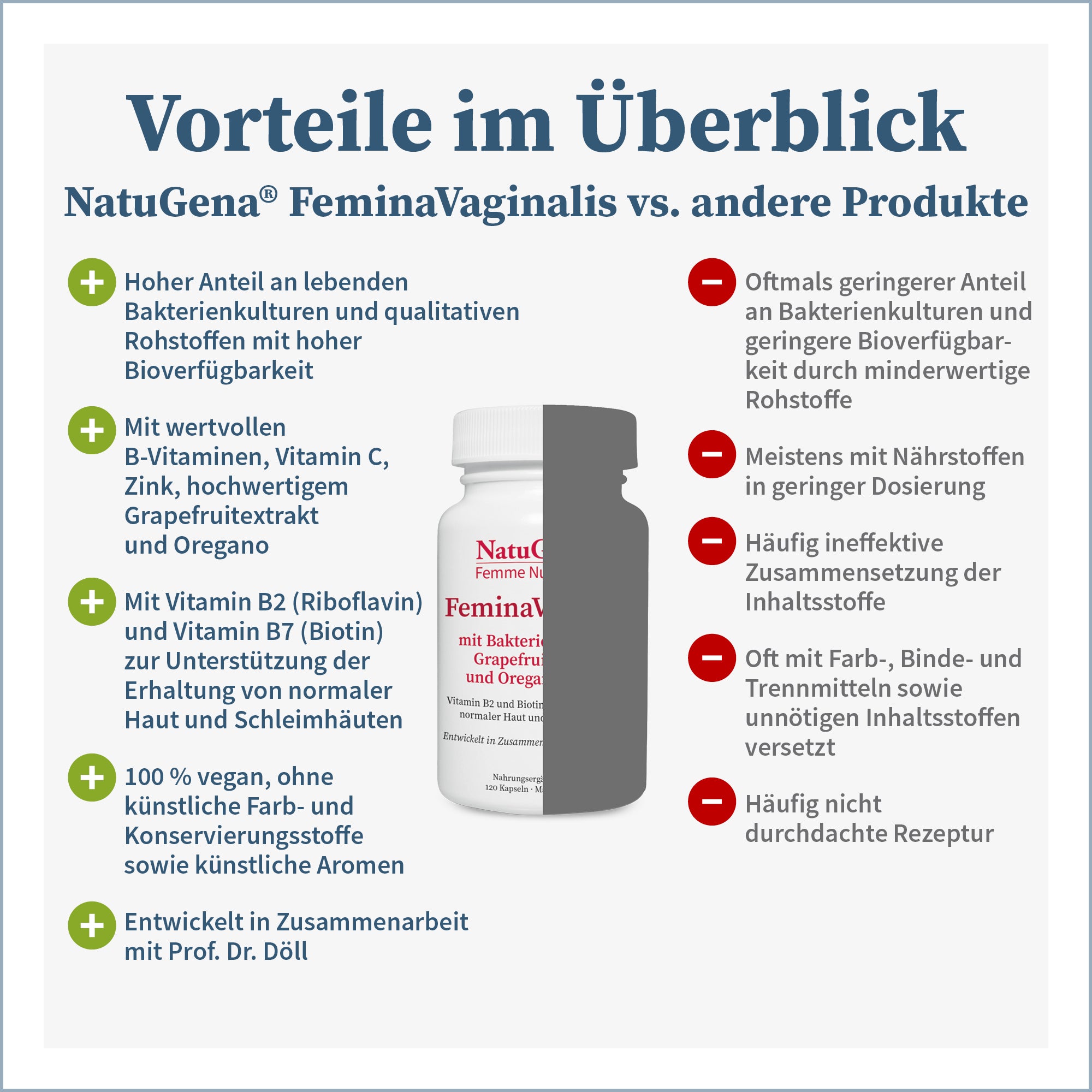 - FeminaVaginalis enthält lebende Bakterienkulturen, Grapefruitkernextrakt und Oregano